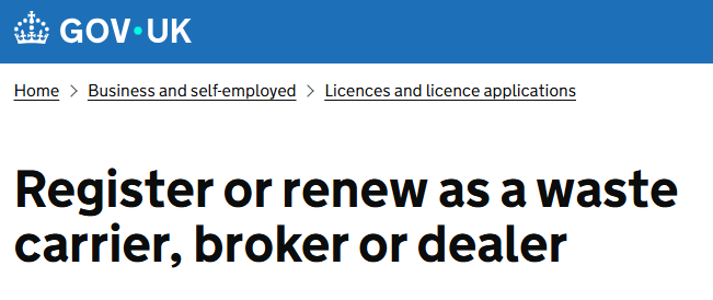 Register as a waste carrier, broker or dealer directly online at GOV.UK